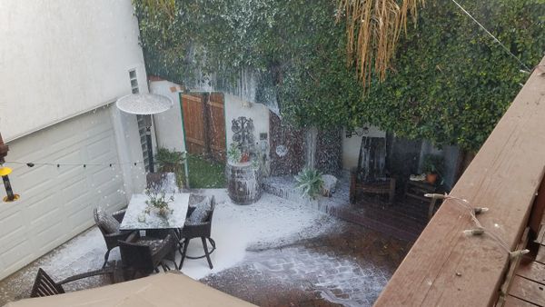As some of you may know, a power line to my neighbor's house was chewed by squirrels, according to the DWP guys, and when the rain hit the exposed wires it arced into my Palm Tree and it caught on fire.